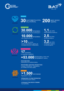 Η BAT Hellas είναι μια από τις κορυφαίες εταιρείες στην ελληνική αγορά, με σημαντική συνεισφορά στην ελληνική οικονομία και κοινωνία, υψηλές διακρίσεις σε θέματα απασχόλησης και έμφαση σε καινοτόμες πρωτοβουλίες. Η εταιρεία ανήκει στην British American Tobacco plc, έναν διεθνή Όμιλο που λειτουργεί από το 1902, απασχολεί περισσότερους από 53.000 εργαζόμενους και δραστηριοποιείται σε περισσότερες από 180 αγορές. Η Ελλάδα έχει επιλεγεί ως περιφερειακό κέντρο και για το Ισραήλ, την Κύπρο και την Μάλτα.