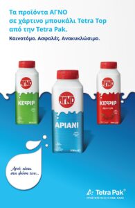 Τα γαλακτοκομικά προϊόντα ΑΓΝΟ, επιστρέφουν και πάλι στη ζωή μας στη νέα χάρτινη συσκευασία Tetra Top, με την υπογραφή της Tetra Pak. Το χάρτινο μπουκάλι Tetra Top® είναι ανακυκλώσιμο, και διαθέτει μη αποσπώμενο καπάκι, που συμβάλλει στη μείωση των απορριμμάτων, καθώς ανακυκλώνεται μαζί με τη συσκευασία, ενώ αφού ανακυκλωθεί αποκτά νέα ζωή και μετατρέπεται σε χρήσιμα προϊόντα όπως γλάστρες, χαρτοπετσέτες κλπ.