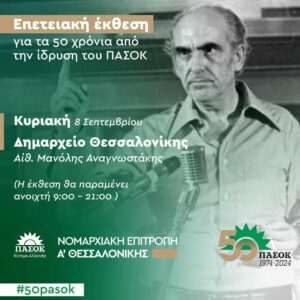 Σας προσκαλούμε στην Επετειακή εκδήλωση του ΠΑΣΟΚ Κίνημα Αλλαγής Θεσσαλονίκης,