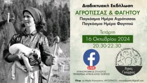 Ο Κτηνοτροφικός Σύλλογος Περιφέρειας Αττικής αναγνωρίζοντας την σημαντική συμβολή της αγρότισσας στην Τοπική Ανάπτυξη καθιέρωσε την εκδήλωση στις 15/10/2018 και μετά την πανδημία covid-19 η εκδήλωση γίνεται διαδικτυακά. Έτσι όλες οι αγρότισσες από διάφορα μέρη της Ελλάδος μπορούν να συμμετέχουν χωρίς να απομακρυνθούν από τις καθημερινές «υποχρεωτικές» επαγγελματικές ή οικογενειακές υποχρεώσεις, την Τετάρτη, 16 Οκτ 2024, στις 20.30 στο zoom στο https://us02web.zoom.us/j/88594231820 ή για απλή συμμετοχή, στο facebook στο προφίλ «ΚΤΗΝΟΤΡΟΦΙΚΟΣ ΣΥΛΛΟΓΟΣ ΠΕΡΙΦΕΡΕΙΑΣ ΑΤΤΙΚΗΣ-ΑΓΙΟΣ ΓΕΩΡΓΙΟΣ», με την φροντίδα της κας Μάγδας Κοντογιάννη, κτηνοτρόφου, Μενίδι, Γραμματέως του «ΚΤΗΝΟΤΡΟΦΙΚΟΥ ΣΥΛΛΟΓΟΥ ΠΕΡΙΦΕΡΕΙΑΣ ΑΤΤΙΚΗΣ-ΑΓΙΟΣ ΓΕΩΡΓΙΟΣ».