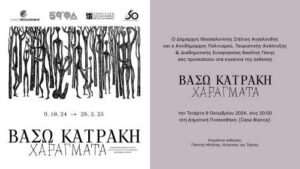 Εγκαινιάζεται την Τετάρτη 9 Οκτωβρίου και ώρα 20:00 η αναδρομική έκθεση Βάσω Κατράκη – Χαράγματα, με έργα από τη συλλογή της οικογένειας Μαριάννας Κατράκη.