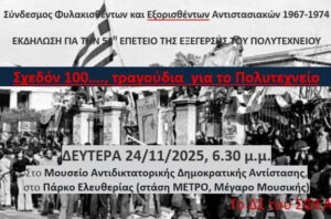 ΕΚΔΗΛΩΣΗ ΓΙΑ ΤΗΝ 52Η ΕΠΕΤΕΙΟ ΤΗΣ ΕΞΕΓΕΡΣΗΣ ΤΟΥ ΠΟΛΥΤΕΧΝΕΙΟΥ