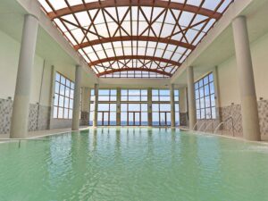 Το υδροθεραπευτήριο, που λειτουργεί από το 2002, διαθέτει δύο μικτές πισίνες, εσωτερική και εξωτερική, δέκα ατομικές μπανιέρες με ιαματικό θαλασσινό νερό 34,5°C, σάουνα, χαμάμ, καταιωνιστήρες, φυσιοθεραπευτήριο, ατομικό και ομαδικό υδρομασάζ (τζακουζι),τόσο στον εσωτερικό όσο και στον αξωτερικό χώρο, για αναζωογόνηση.